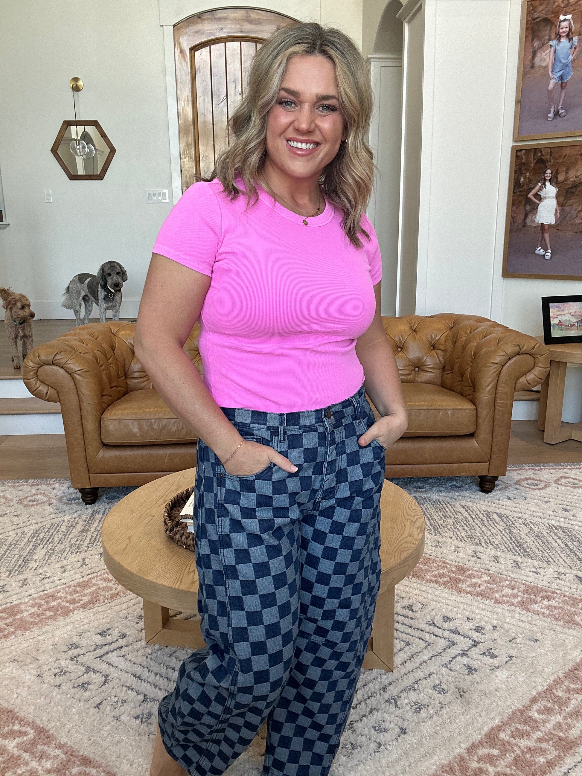 SAGE+FIG Barrel Style Leg Checkered Print Jeans